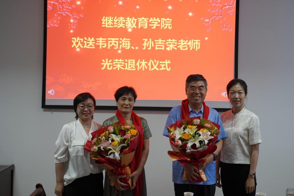 6月20日,米乐mile官方网站隆重举行2023年教职工光荣退休仪式,欢送韦丙海、孙吉荣两位老师光荣退休。学校米乐mile官方网站全体教职工参加仪式。仪式由党总支副书记闫海平主持。
