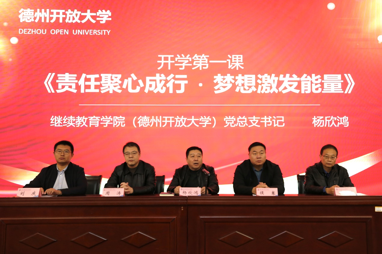 典礼在庄严的国歌声中拉开帷幕。米乐mile官方网站(德州开放大学)党总支书记杨欣鸿以《责任聚心成行,梦想激发能量》为题,为新生讲授开学第一课。他详细介绍了学校发展历程、办学现状及发展愿景,并希望全体新生能够把全部的热情、激情、活力投入到个人发展及社会服务中去,在实现个人梦想的同时,发挥个人应有的社会价值,让自己的梦想在社会主义伟大事业的建设中焕发出绚丽的光彩。