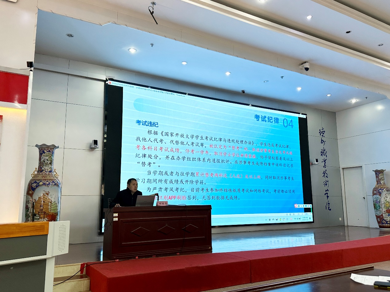 德州开放大学刘庆、郑林霄、高国辉分别从新生入学思想认识、走进开放教育、机房实操等方面,为全体新生详细介绍了开放教育从入学到毕业各个环节的学习要求,对学生日常学习、考试等进行全面培训并提出指导性建议。