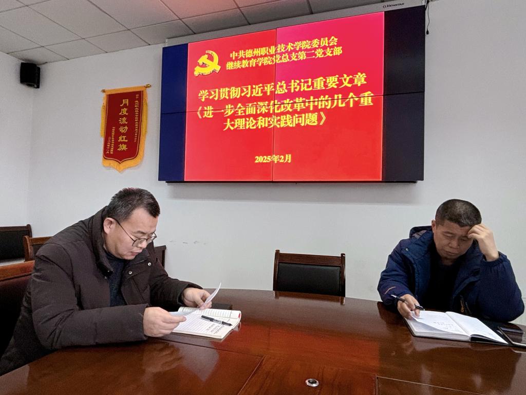 (二)学习贯彻习近平总书记重要文章。学习《进一步全面深化改革中的几个重大理论和实践问题》,准确把握守正创新原则,科学谋划改革路径,营造深化改革良好氛围。(刘咏华同志领学)