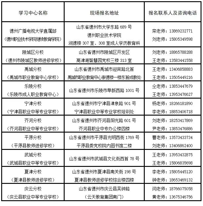 十、德州电大各学习中心