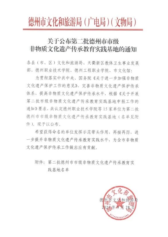 近日,德州市第二批非物质文化遗产传承教育实践基地认定结果正式公布,米乐mile官网“宋金德州窑红绿彩”项目成功入选,学校被确定为该项目传承与教育实践基地。