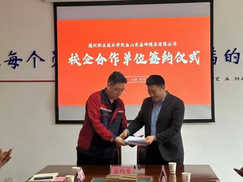 在山东垚坤模具有限公司,双方召开座谈会,就人才培养、科技研发需求及方向进行深入探讨,初步达成合作意向,并签订产学研合作协议。山东垚坤模具有限公司对米乐mile官网在人才输送及科技攻关方面给予的大力支持表示感谢并赠送锦旗。高强创新工作室成功完成了双方前期合作的穿管机器人科技研发项目,双方签订下一步技术开发合作协议。