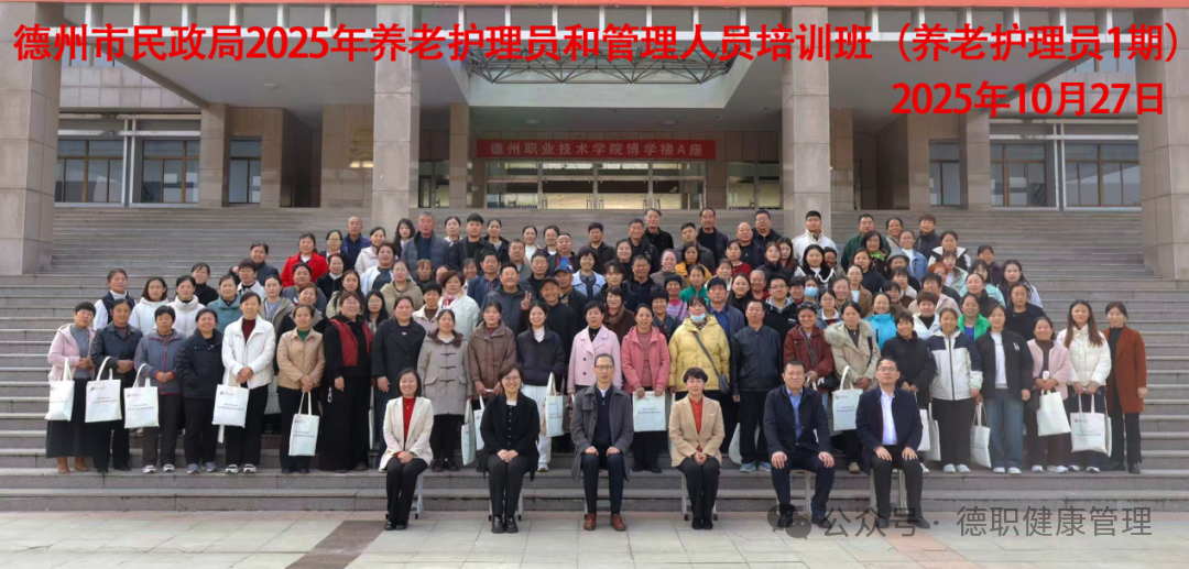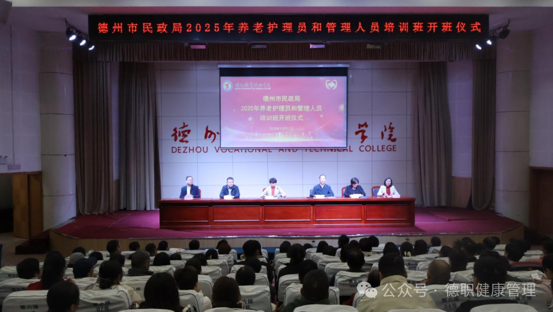 10月27日上午,德州市民政局2025年养老护理员和管理人员培训开班仪式在米乐mile官网举行。党委委员、副书记赵晓静,德州市社会组织发展中心主任常立磊,米乐mile官方网站及健康管理学院相关负责人参加了开班仪式。